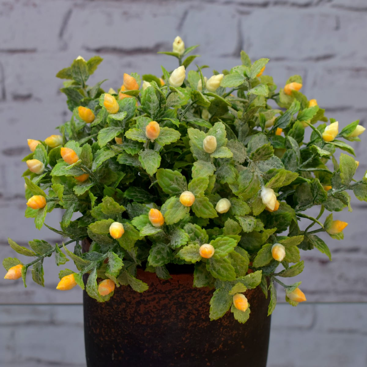 - 8 Galhos de Flores Permanentes em Tons de Amarelo e Creme com Folhagens Verdes