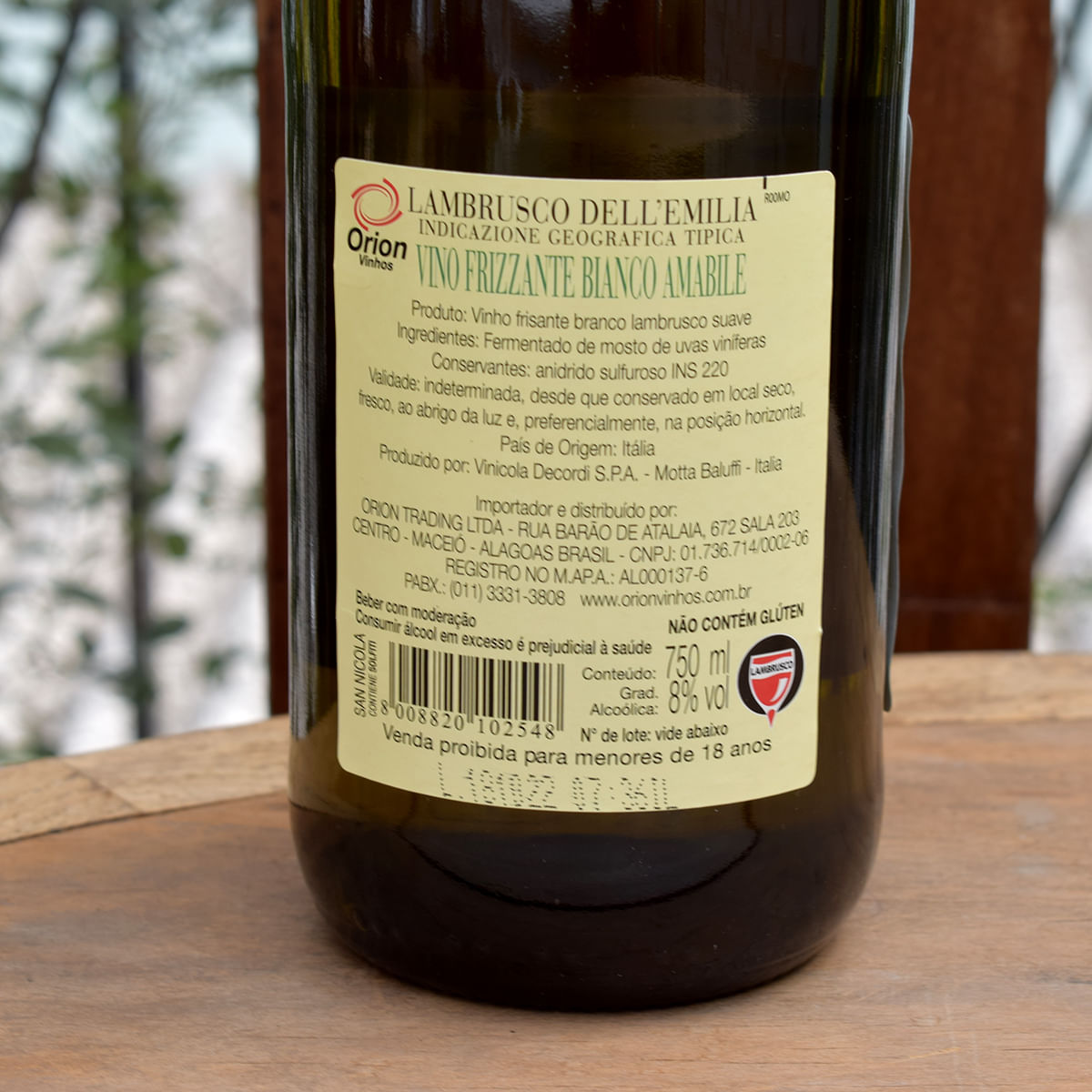 produtor país itália tipo lambrusco Branco Suave uva 30% Malvasia, 70% Trebbiano