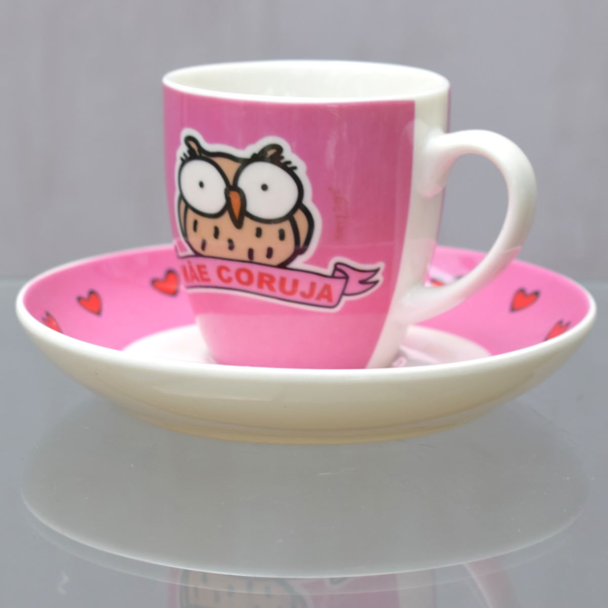 Xícara Cafezinho Pires Mãe Coruja + Lata