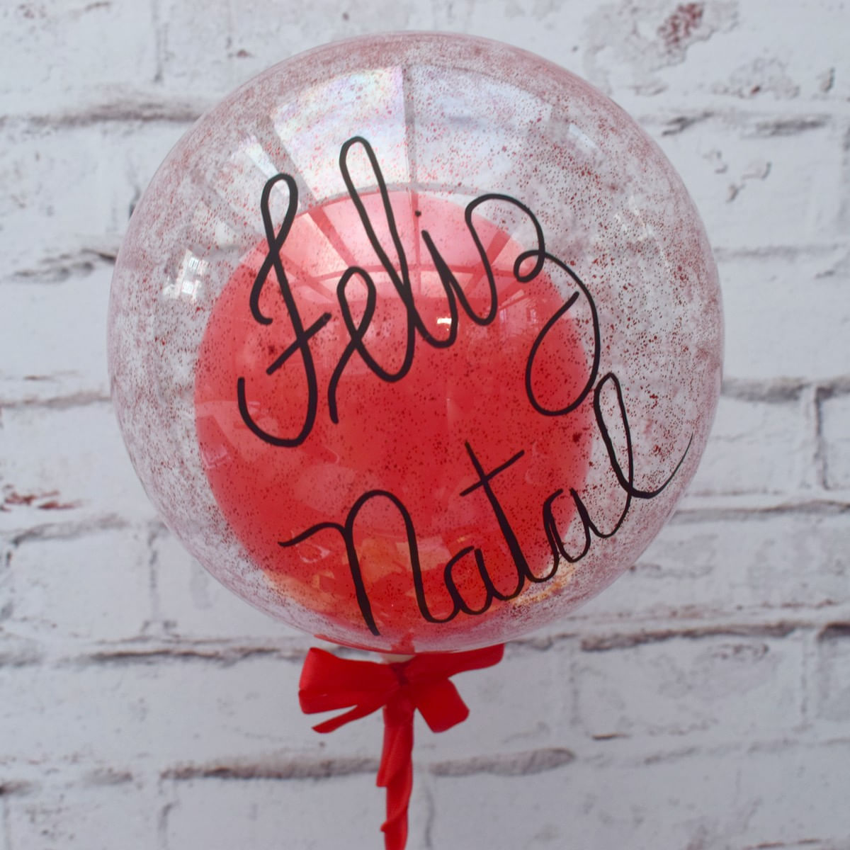balão: Balão Bubble 9' Polegadas V C/ Escrita "feliz Natal"