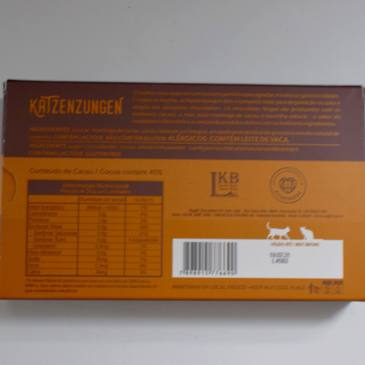 O Melhor Chocolate Ao Leite Das Américas, em Um Formato Perfeito Para Agradar a Todos Os Gostos e Idades. Criadas Na Áustria, As Katzenzungen Tem o Tamanho Ideal Para Degustação ou Para a Alegria Dos Pequenos Chocolatiers.
