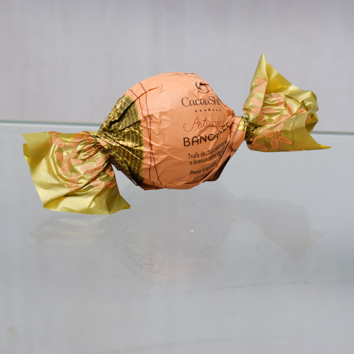 trufa de Chocolate Ao Leite e Branco Sabor Banoffee. Uma Delícia Que Só a Cacau Show Sabe Fazer!