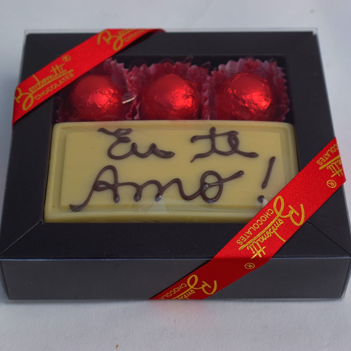 Caixa Luxo Card 3 Bombons Eu Te Amo! (chocolate Branco)