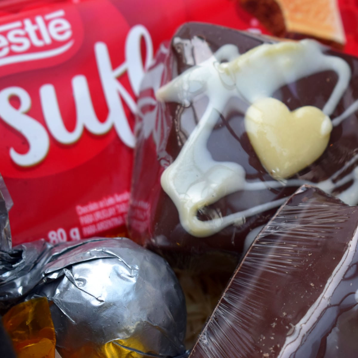 qtd produtos marca peso 1 barra de Chocolate Suflair nestle 80g 1 lingua de Gato Katzenzungen 45% nugali 100g 2 pão de Mel Artesanal dorella 80g 4 trufas delly 40g