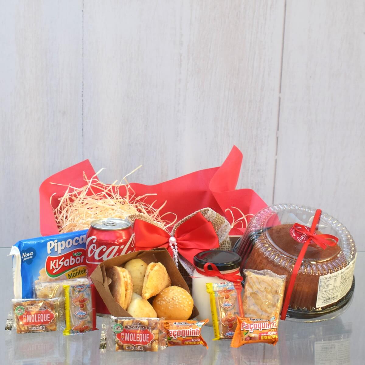 qtd produtos Não Refrigerados marca peso 1 amendoim No Saco Kraft P amendoas do Ceará 100g 2 barrinha de Cocada jabolac 60g 1 bolo Inglês panutti 260g 2 doce de Amendoim doces Confirma 20g 1 mini Cesse Burguer due Fratelli und 4 mini Salgado Assado buon Giorno und 2 paçoca dacolônia 18g 2 pé de Moleque dacolônia 14g 1 pipoca de Microondas kisabor und 1 canjica No Vidro Conserva buon Giorno und 1 refrigerante coca-Cola 350ml decoração laço Cetim de 22 Cm/acrlico/aljofre/celofane/palha/laço de Juta