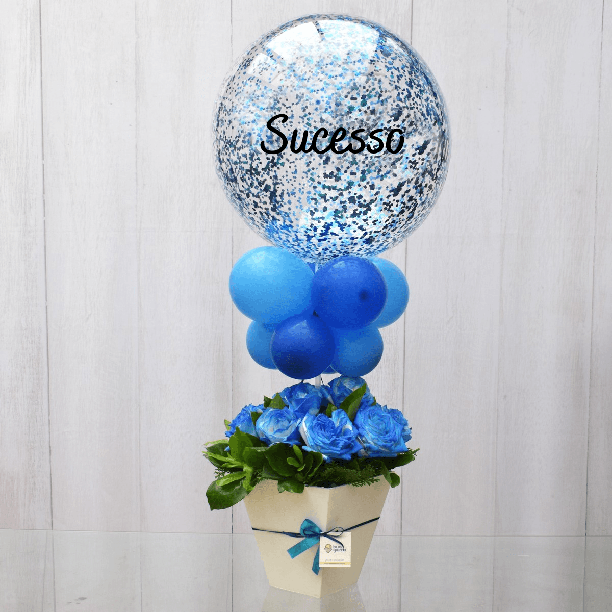 - 01 Balão Bubble Vareta 36 Pol' com Gliter em Tom de Azul C/ Adesivo Frase (a Escolher)