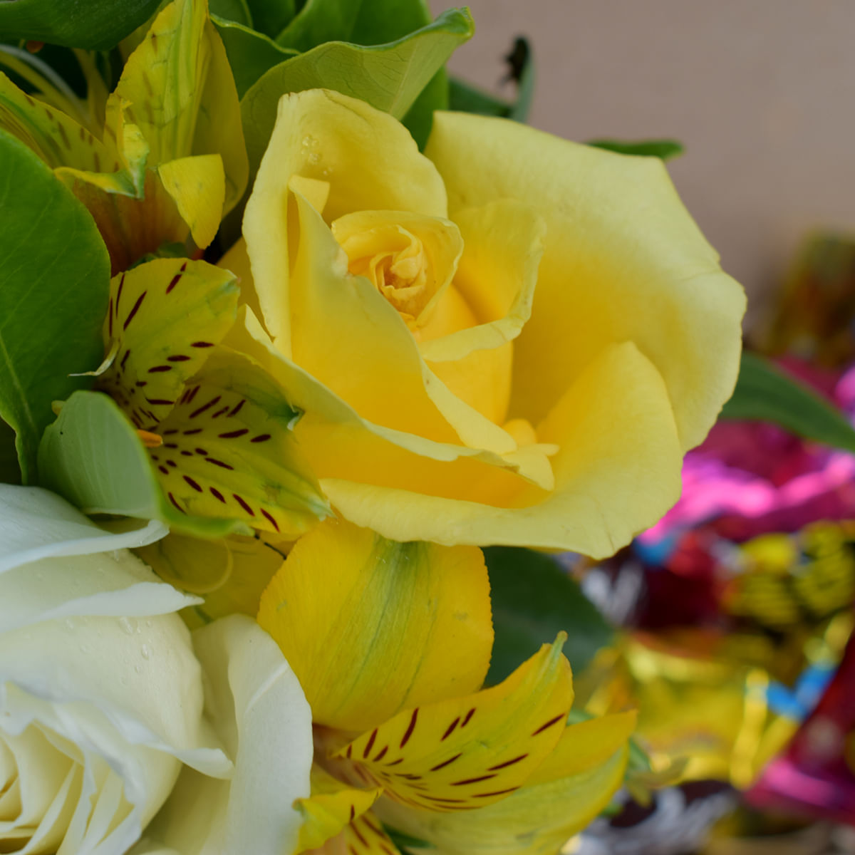 • 05 Galhos de Alstroemerias em Tons de Amarelo e Branco ou Flores Permanentes