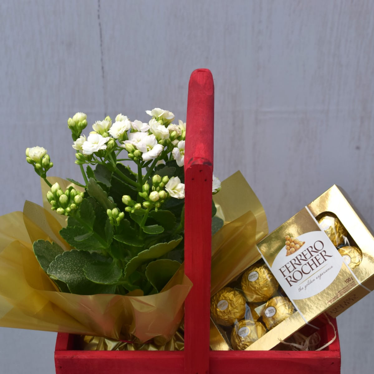 CESTA VERMELHA COM ALÇA + KALANCHOE