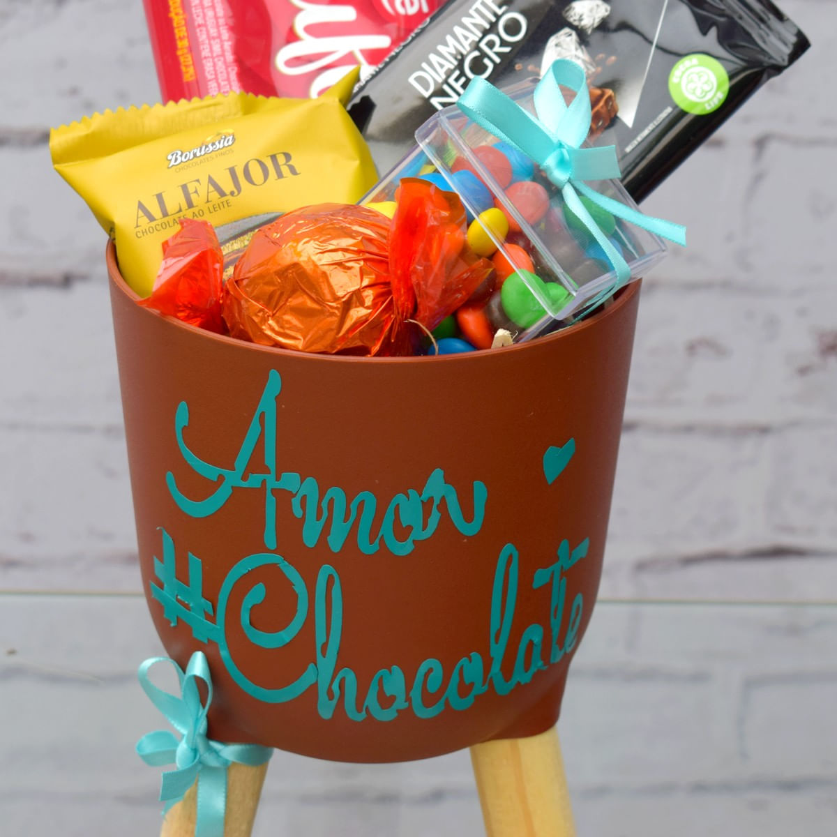 base: Cachepo Brulet com Pés C/ Plotter Amor, Chocolate e Coração