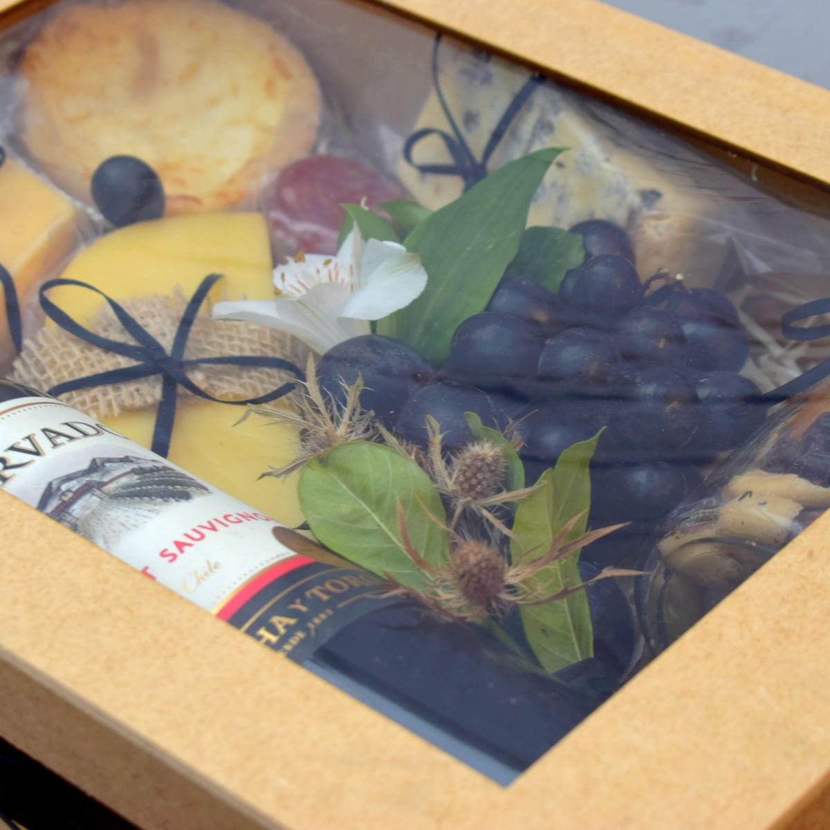 qtd produtos Não Refrigerados marca peso 1 mix de Oleaginosas No Vidro G amendoas do Ceará 150g 1 quiche denise Salgados und 1 cacho de Uva fruta 200g 1 queijo Gorgonzola são Vicente 150g 1 queijo Gouda tirolez 150g 2 queijo Provolone três Maria 200g 1 salame aurora 50g 1 vinho escolher Opção decoração laço Cetim de 22 Cm/acrlico/aljofre/celofane/palha/flores Secas