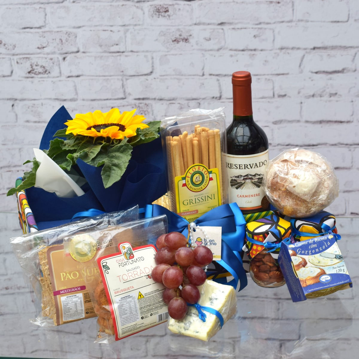 1 celofane albano 1 mini Girassol Encantado buon Giorno 1 caixa Reciclada Estampada Romero Brito G buon Giorno 1 laço Azul Duplo M buon Giorno