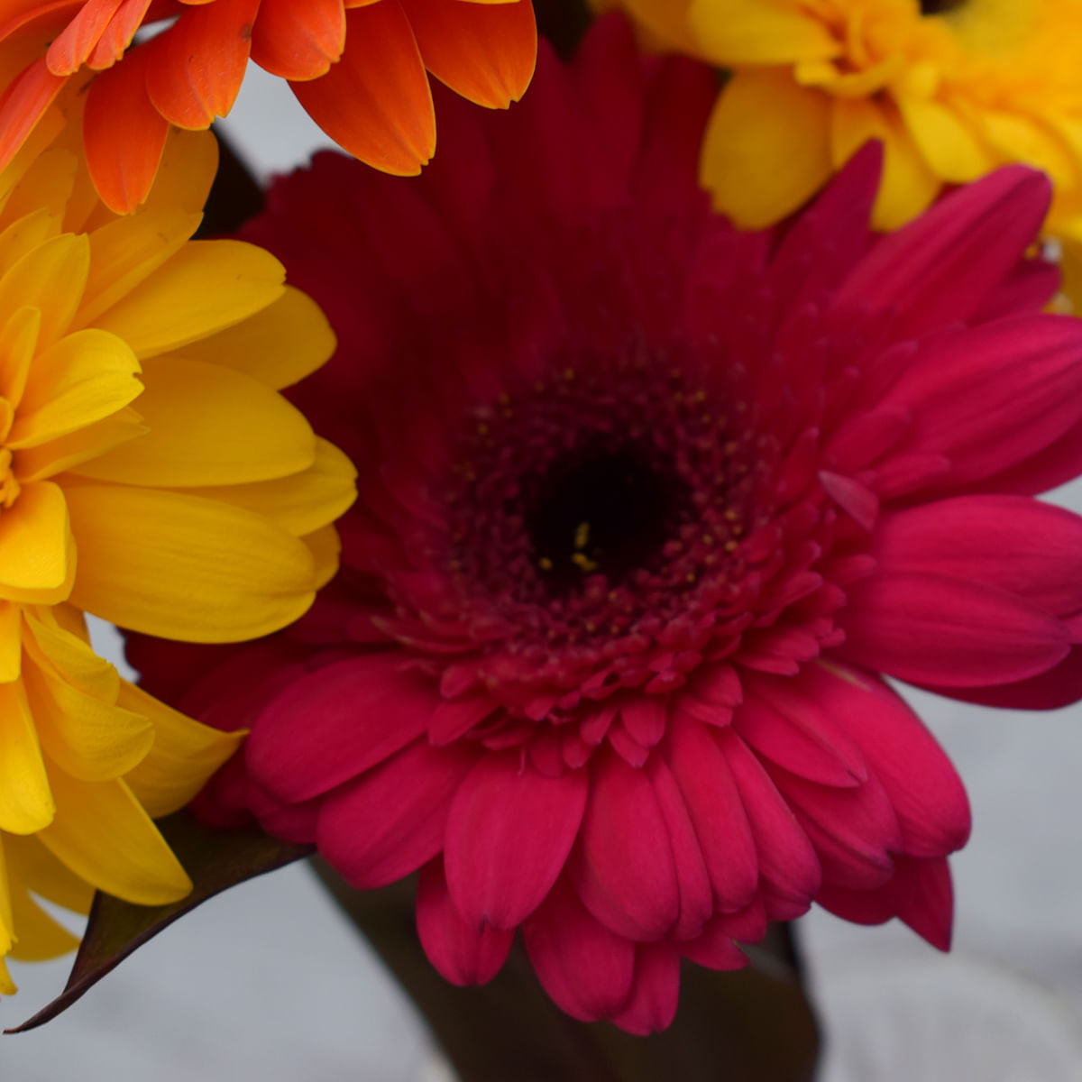 descrição: - 01 Vaso de Vidro (18 X 9 Cm) - 04 Gerberas Coloridas - 05 Folhas de Dracena - 01 Laço Acetinado