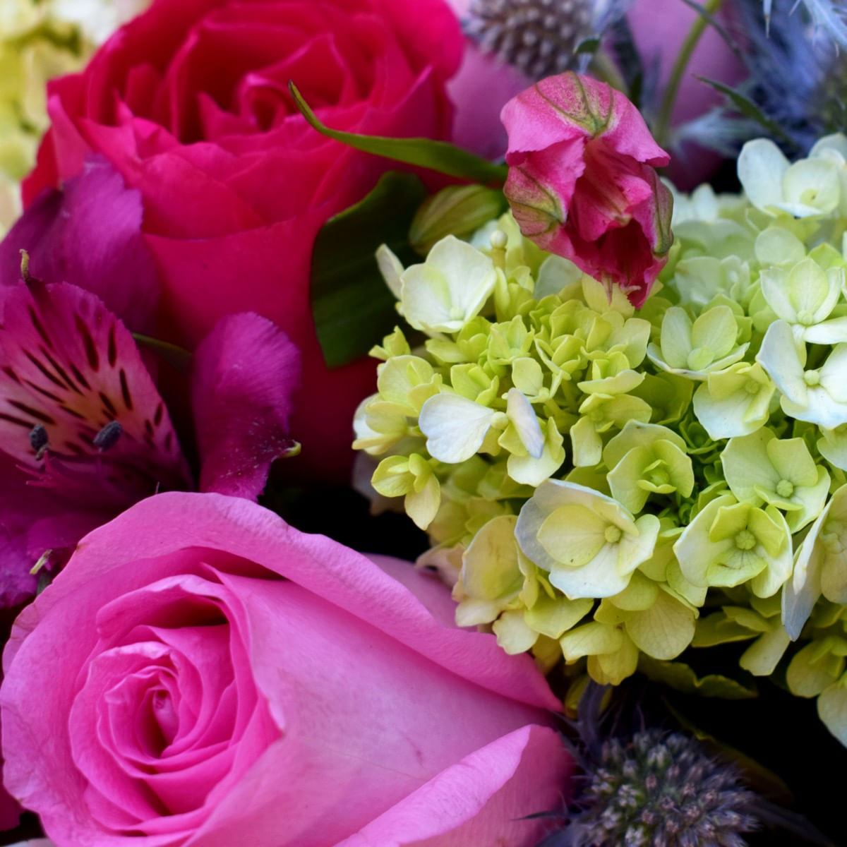descrição: - 06 Rosas Nacionais em Tons Rosados - 02 Galhos de Hortencia Branca - 03 Galhos de Alstroemerias em Tons Rosados - 02 Galhos de Erydium - 01 Caixa de Plastico Revestida com Papel Rosa - 03 Galhos de Eucalipto ou Folhagem Similar - 03 Galhos de Folhas de Gardenia - 01 Laço Acetinado