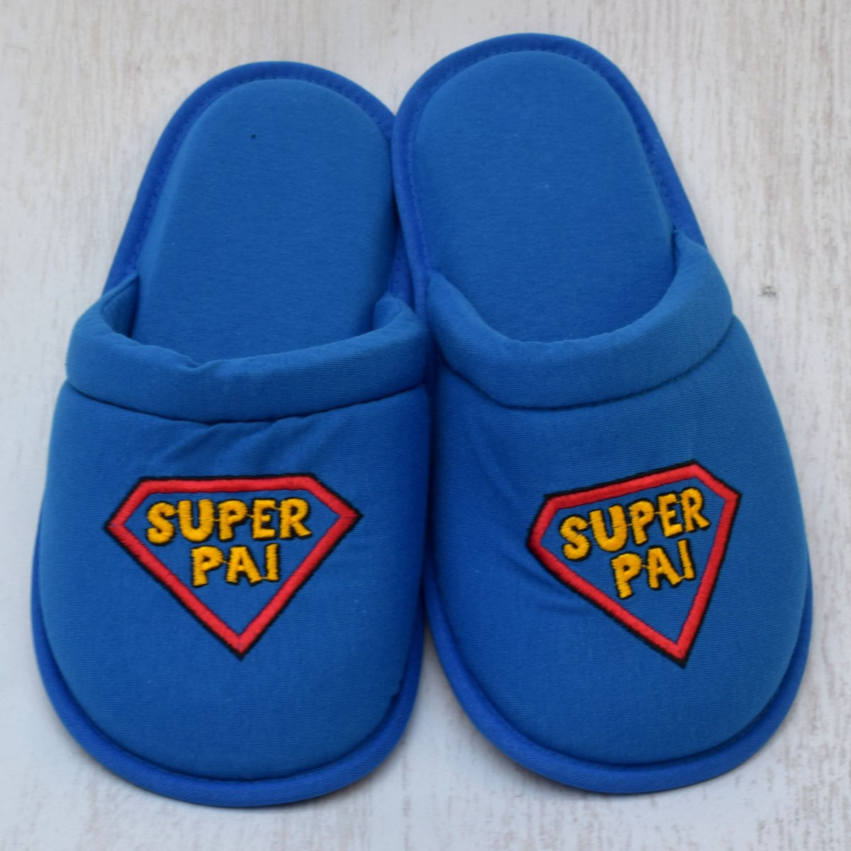 Presenteie Seu Super Papai com Esta Linda Pantufa Azul com o Detalhe em Bordado!