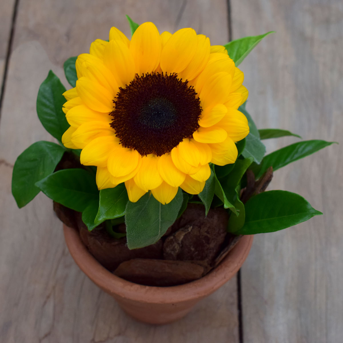 descrição: - 01 Aste de Girassol de Corte - Cascas de Árvore - 01 Vasinho
