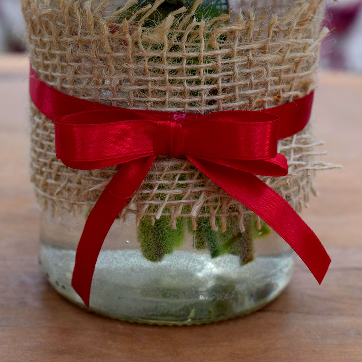 ? 01 Vaso de Vidro Reciclável com Customização em Juta e Fita Acetinada