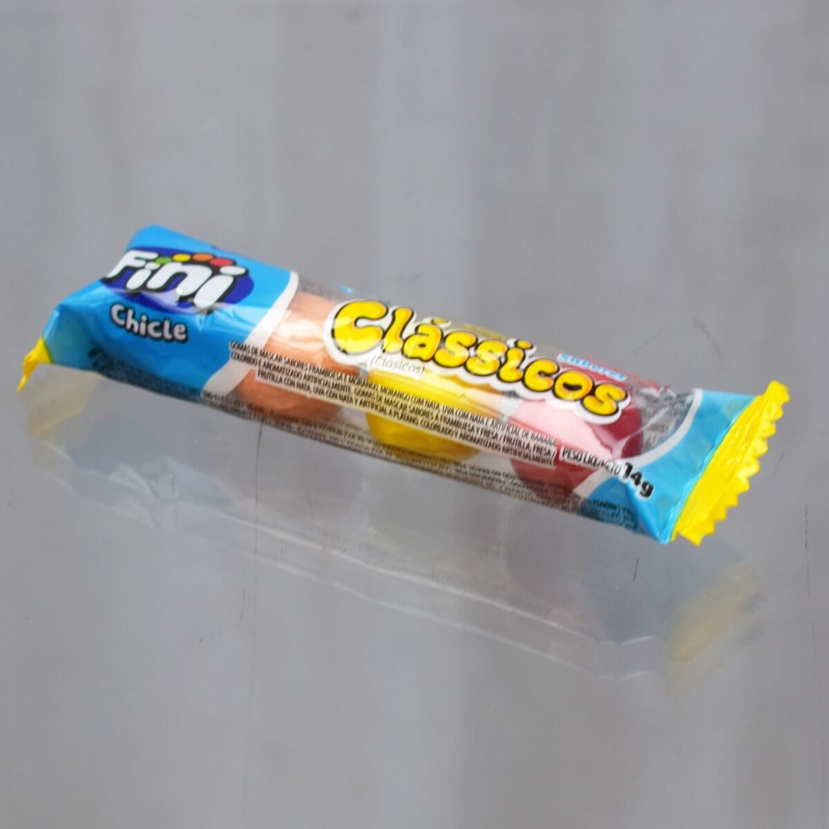 Os Clássicos da Fini Na Versão em Chicle. É Muito Amor em Um Só Pacote. Cada Embalagem Tem 4 Deliciosos Chicles com Os Inconfundíveis Sabores do Tubes de Uva, Dentadura, Banana e Tubes Morango.